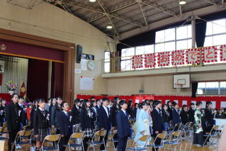 担任を先頭に、緊張した面持ちで卒業生が入場してきました。