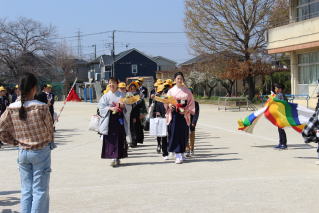 門出の式では、5年生の鼓笛演奏と保護者の皆様・教職員の温かい拍手で見送られました。