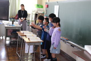 4年生は、国語で「春のうた」の音読発表会を行いました。