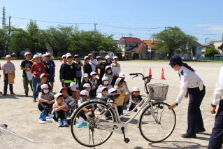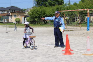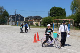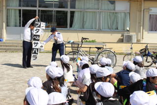 岩槻警察署の方と交通指導員さんをお招きして、交通安全教室を実施しました。4年生は、自転車実技試験を行いました。
