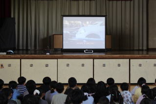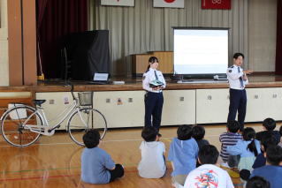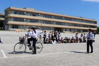 3,5,6年生は正しい自転車の点検の仕方や乗り方について、警察の方の実演と映像で学習しました。