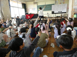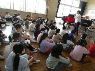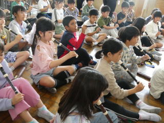 3年生が 講師の方を招いて、初めてのリコーダーの学習をしました。