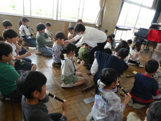 ひまわり学級は、自己紹介と「子犬のマーチ」の合奏をしました。