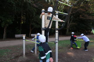 みんなでドッジビーをしたり遊具で遊んだりしました。