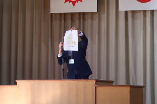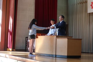 続いて、各クラスで考えた「いじめ0スローガン」を発表し、人権作文コンクールの表彰を行いました。