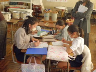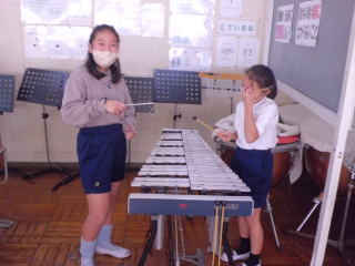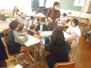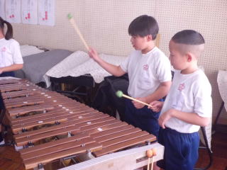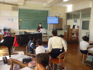 4年生が「音のとくちょうに注目して、音楽を作ろう」という課題で学習しました。初めに3~4人グループになり、担当する楽器や曲のテーマを話し合いました。