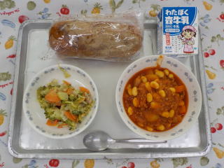 キャラメル揚げパン チリコンカン ブロッコリーのマヨ炒め *インフルエンザが流行っています。手洗いうがいを心がけ、栄養をとり、温かくしてしっかり睡眠をとりましょう。 |