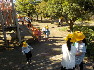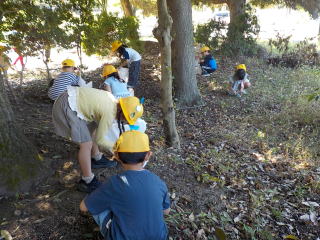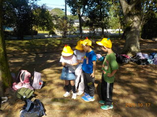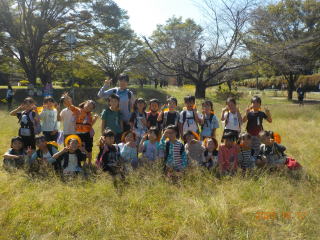 1年生が生活科の学習「秋探し」をするために、西城沼公園に行きました。どんぐりなどの木の実をたくさん集めました。