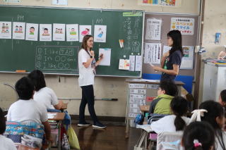 続いて先生たちのお手本を見たあと、会話の練習をしました。