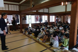 会津藩に伝わる「什の掟」についてお話を伺ったり、弓矢体験をしたりしました。