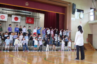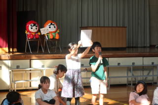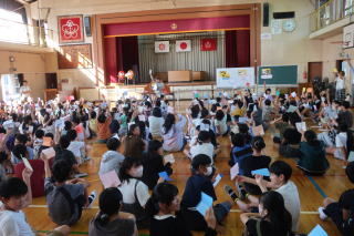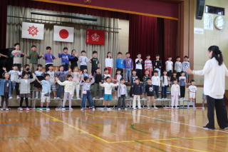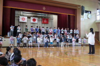 今朝は音楽朝会でした。1年生が「なかよし」と「やまびこごっこ」を発表しました。
