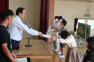 続いて、各クラスで考えた「いじめ0スローガン」を発表し、人権作文コンクールの表彰を行いました。