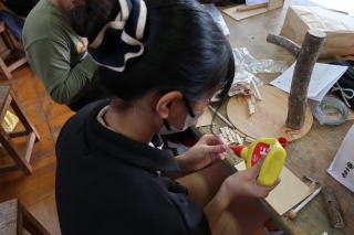 木と金属をそれぞれ加工し、それを組み合わせてオブジェを作るという活動でした。作品にはそれぞれ子供たちの個性が出ており、完成が楽しみです。