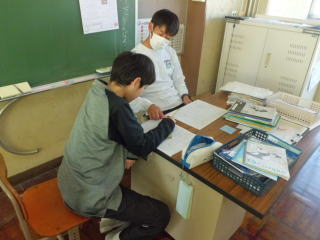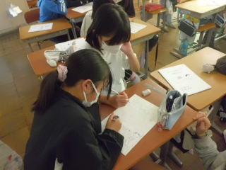 6年生が社会の学習で、江戸時代の鎖国に至る過程について学習しました。全員で教科書を読み合わせたあと、個人で穴埋め式になっているプリントに適切な言葉を入れて、まとめていきました。