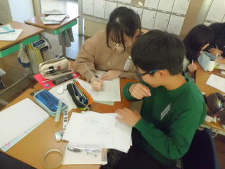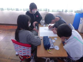 6年生が学級活動で、卒業アルバムのクラスページの作成に取り組んでいました。表紙やプロフィールなどのページをグループで協力しながら進めていました。