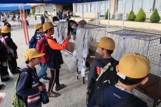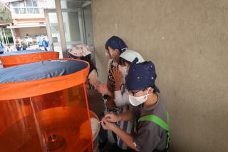 4年生が社会科見学に行きました。一か所目は防災学習センターで、地震や暴風を体験したり、消火器の使い方を学んだりしました。