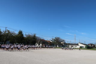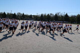 今朝は体育朝会を行いました。気持ちの良い秋空の下、持久走の練習が始まりました。
