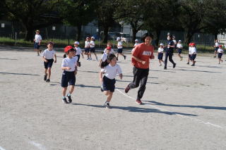 今日は台風が接近したため、運動するのに丁度よい気温でした。子供たちも気持ちよさそうに体を動かしていました。