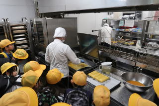 バックヤードでは、おいしそうなお惣菜ができる様子に釘付けでした。