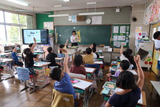 6年生は、新しいALTの先生の自己紹介クイズに、積極的に参加していました。