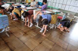 放送に指示に従って、速やかに全校児童が体育館に避難しました。